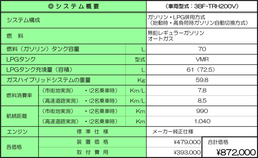 毎月のガソリン代が重いオーナー様ほど、ガスハイブリッドの効果を実感出来ます。 (LPG専用もあります)A-09