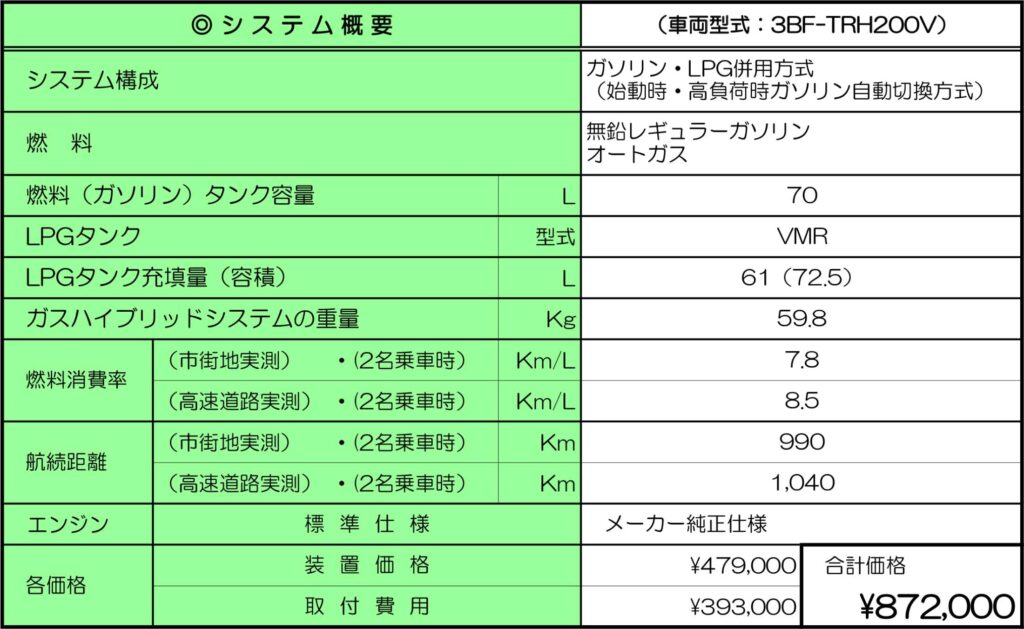 - トヨタ・ハイエースワゴン用 ガスハイブリッドシステム