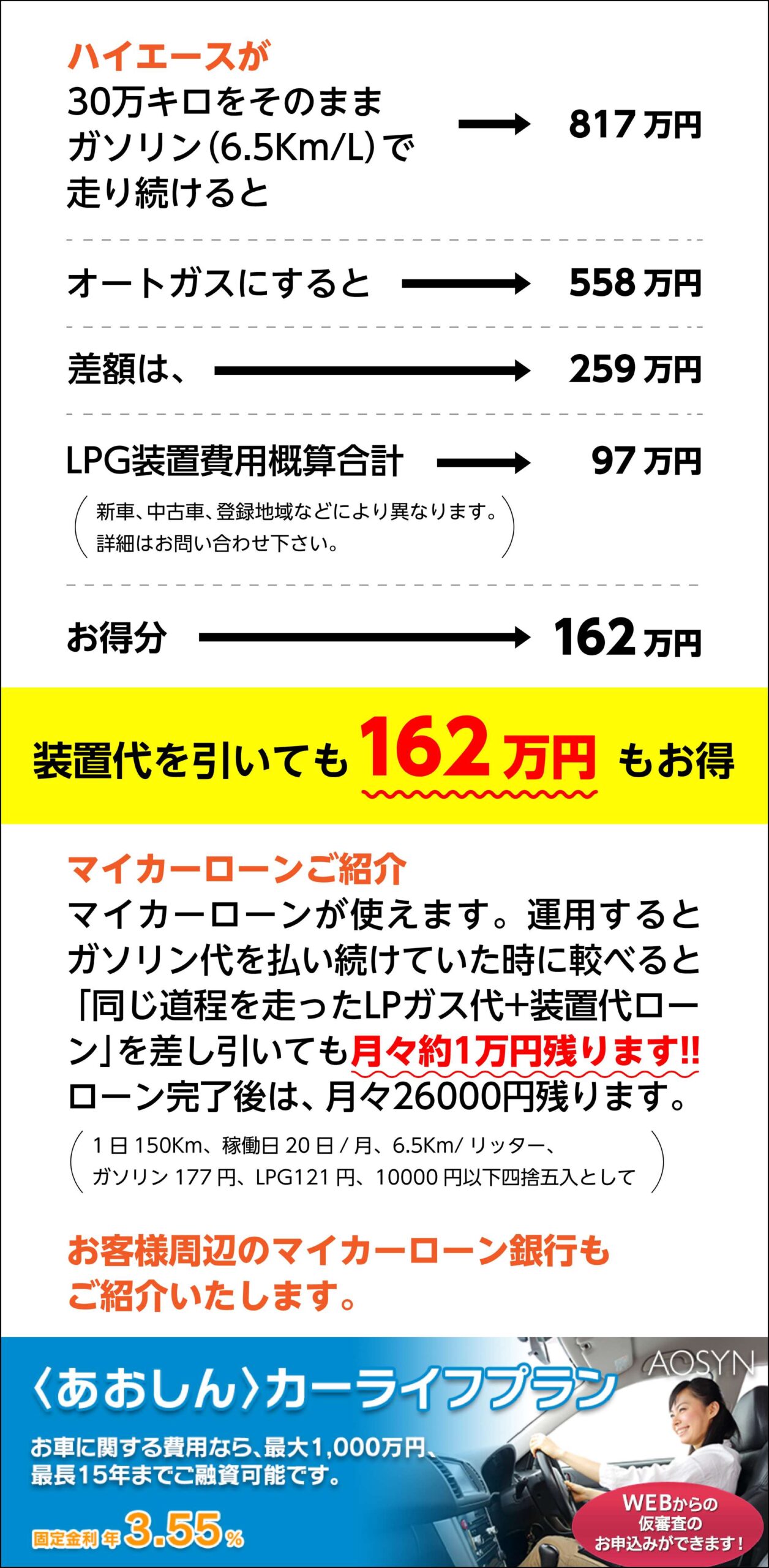 ガスハイブリッドにすることでガソリン代40%カット